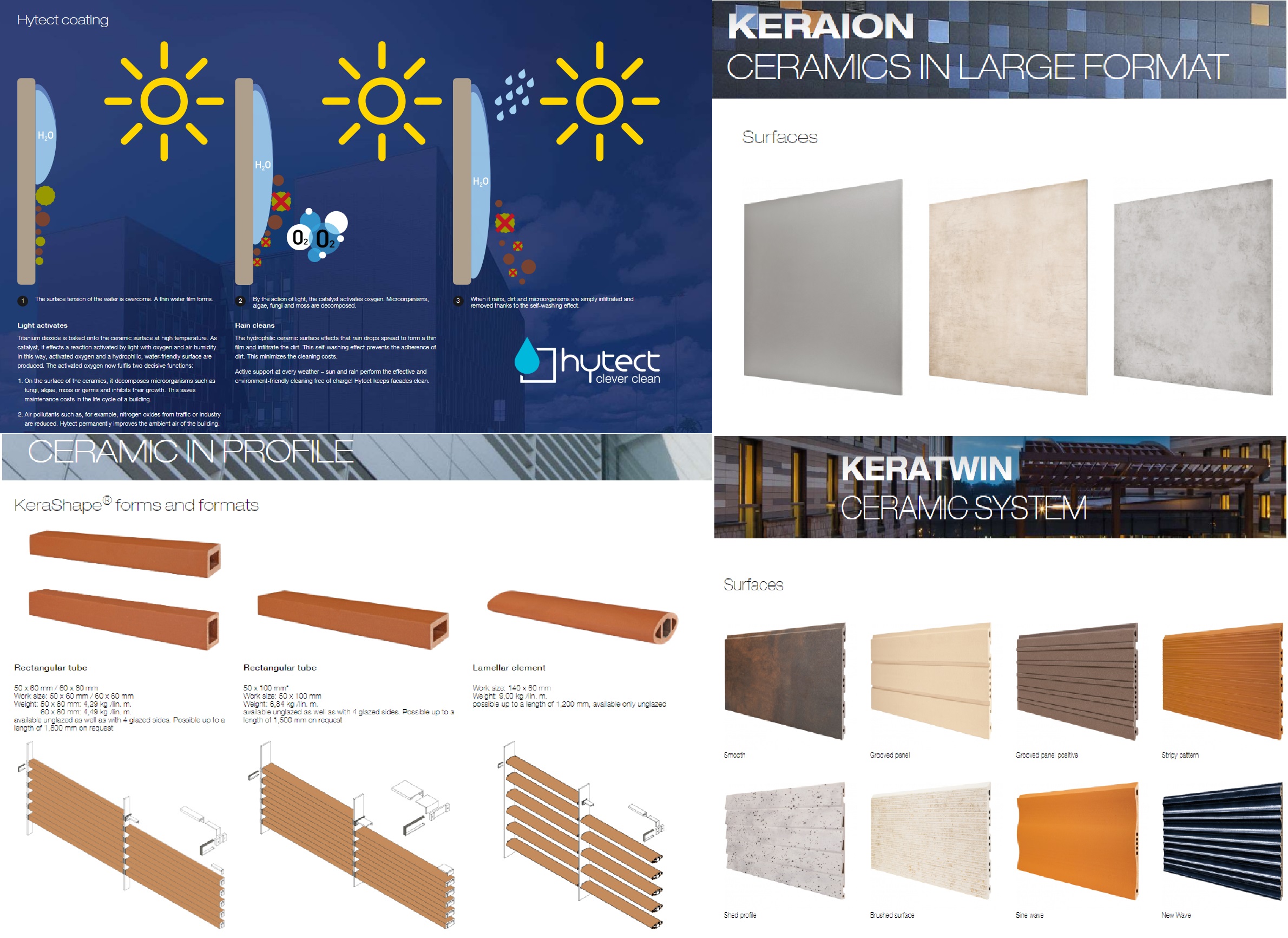 Agrob Buchtal GmbH предлага висококачествена архитектурна керамика, фасадна керамика, керамика за басейни и SPA зони, жилищна керамика, керамика за тераси и други. Най-често архитектурната керамика намира своето приложение в търговски и офис сгради. Фасадната керамика на Agrob Buchtal GmbH представя иновативни фасадни решения и системи за вентилируеми фасади. Сред уникалните предимства на фасадните клинкерни плочи е възможността за полагане на самопочистващо покритие от титаниев диоксид – HYTECT, което е изключително практично, защото спестява пари в дългосрочен план. Керамиката за басейни и SPA зони е цялостно решение за всеки проект. Жилищната керамика включва подови и стенни керамични облицовки за бани, кухни, коридори, всекидневни и други помещения.