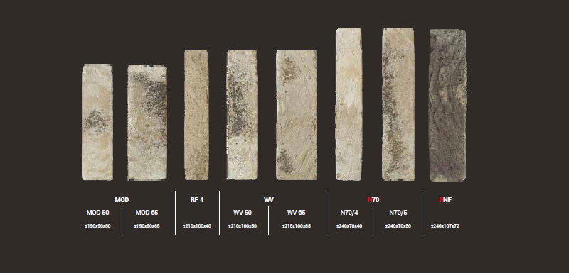 N70 има изключителен тухлен формат: ± 240x70x40 mm (N70/4) и ± 240x70x50 mm (N70/5). Благодарение на тези размери клинкерните тухли от колекцията N70 са не само с 3 cm по-тесни, но и с 3 cm по-дълги от традиционния облицован тухлен формат Waal. Екологичният отпечатък на N70 е много по-малък от този на класическата тухла. Това е така, защото емисиите на въглероден диоксид от N70 са с 25% по-ниски, в сравнение с традиционните облицовъчни тухли (WV 50).