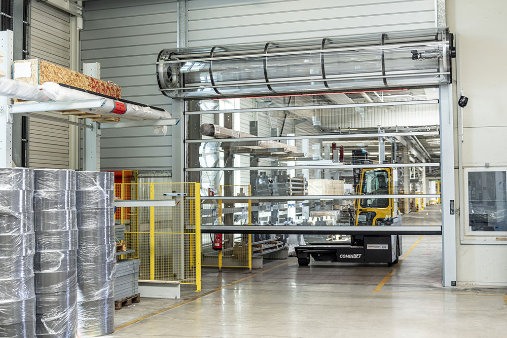 Бързодвижещата се врата HS 5040 TurboLux S от Hörmann, със своята скорост на отваряне от над 4 m/s е най-бързата врата със спираловиден механизъм на света. Прозрачното 90 процента платно осигурява добра видимост и висока степен на осветеност.