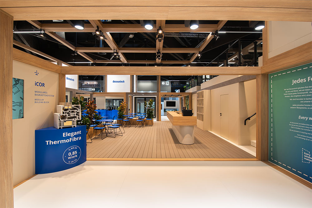 Посетителите на панаира имаха възможност да се запознаят с цялото портфолио от многократно награждавания PVC профил Deceuninck Elegant, който е допълнително усъвършенстван от системата iCOR, която позволява комбинирането на различни серии каси и различни дизайни на крилата. Освен това е въведена иновативната технология за стъклени влакна ThermoFibra, вместо стоманени армировки, което позволява още по-добра топлоизолация и по-голяма стабилност на профила с по-малко тегло. Използването на рециклиран материал в ядрото на профила прави системата много устойчива и профилите могат да бъдат напълно рециклирани в съоръжението за рециклиране на Deceuninck в Белгия.