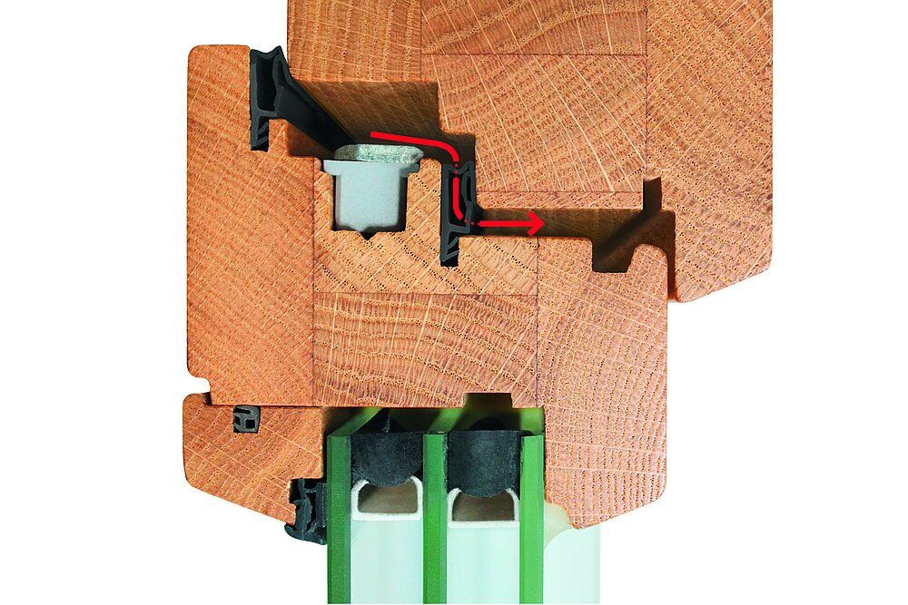 Прекъснатата линия показва къде точно са оптимизирани свойствата на материала на патентования уплътнителен профил, за да се позволи на влагата да прониква извън фалца на прозореца. Deventer може да произведе дифузно средно уплътнение, което да съответства на всяка профилна система.