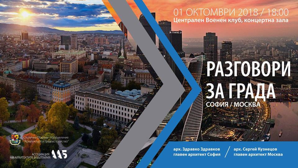 На 1 октомври в Централния военен клуб в София ще се проведе дискусия на тема „София – Москва“ с участието на главния архитект на Москва Сергей Кузнецов. Събитието е организирано от направление „Архитектура и градоустройство“ на Столична община, с подкрепата на Асоциацията на Архитектите в България и е първото от планираната поредица дискусии “Разговори за града”.