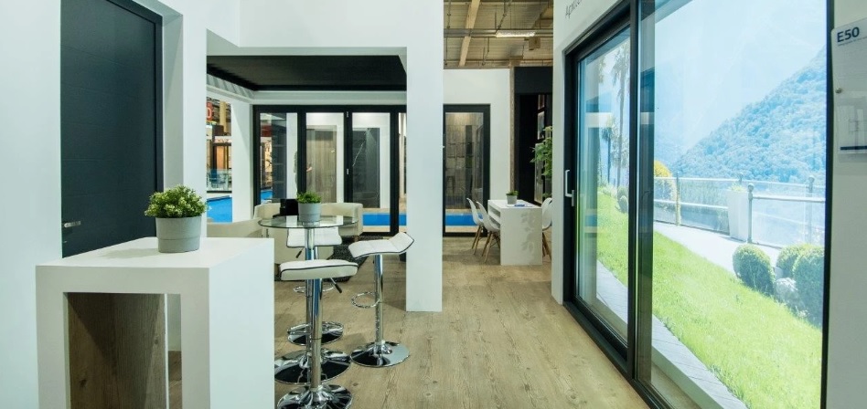 Подвижната пергола, плъзгащите системи ES38 и E50, отваряемите системи E68, E45 и хармониката E39 бяха представени в реални размери, предоставяйки на собствениците от хотелската индустрия широк избор за алуминиеви решения.