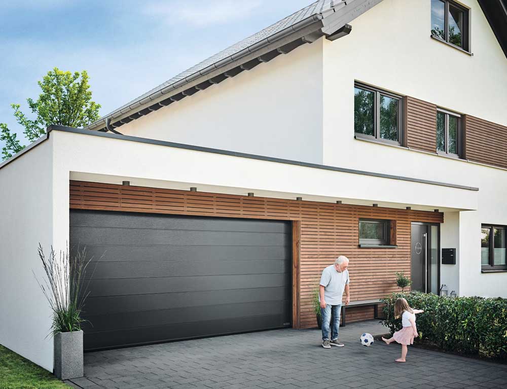 В рамките на годишната кампания Hörmann предлага гаражната секционна врата RenoMatic със задвижване и един брой дистанционно управление. Гаражната секционна врата се доставя с различен дизайн и повърхности и впечатлява не само със сигурност и дълга употреба, но и с добра топлоизолация, постигната с помощта на двустенните ламели с дебелина 42 мм.