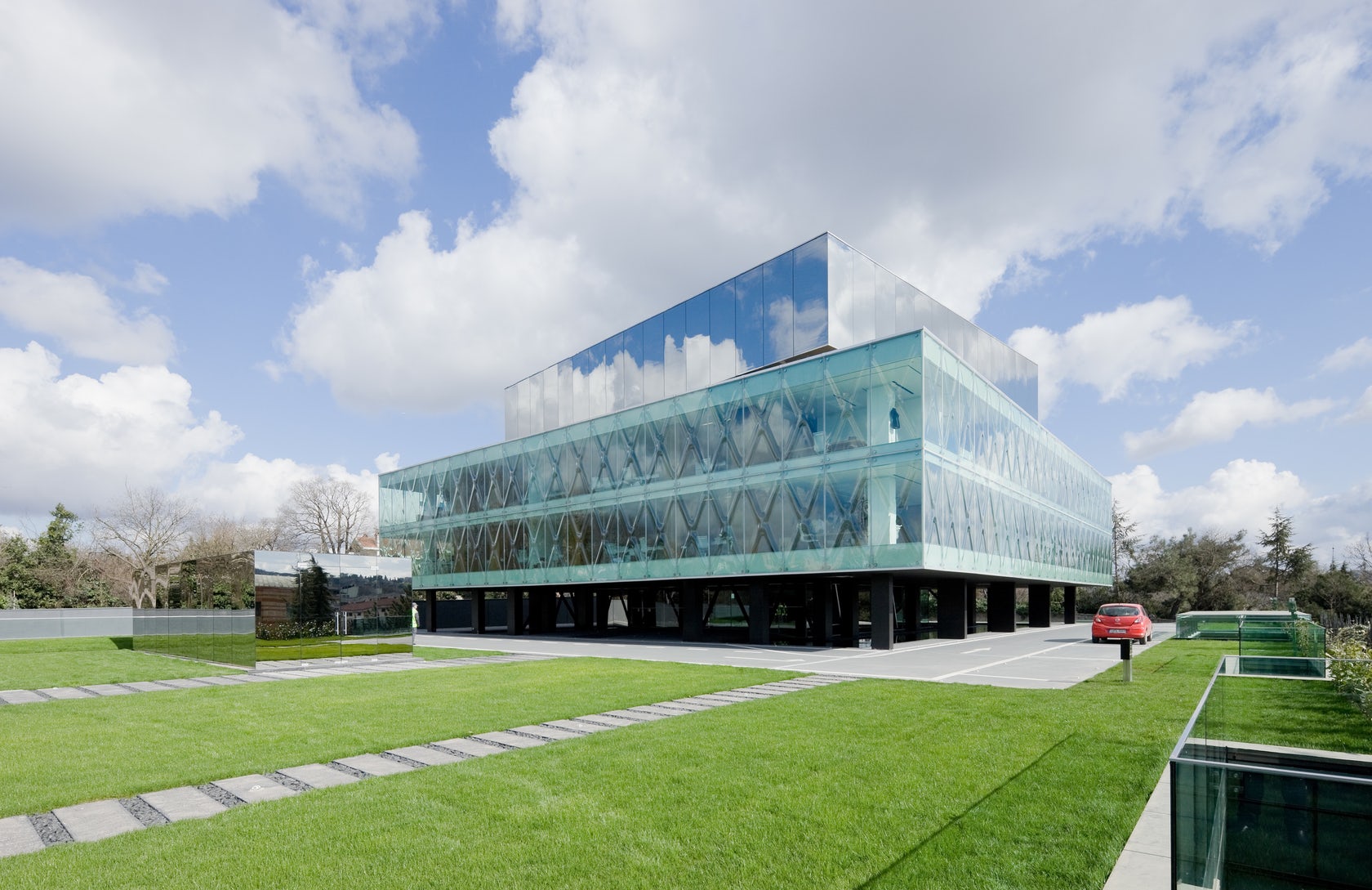 Една от най-ефектните стъклени фасади в мегаполиса Истанбул е тази на сградата на Vakko, водеща модна марка в Турция. Сградата е реконструкция и адаптация на изоставена бетонна структура в града по проект на архитектурно студио REX. Вместо да скрият съществуващата бетонна рамка, архитектите избират да я подчертаят, като облицоват външната ѝ страна в тънки листове от прозрачно стъкло.