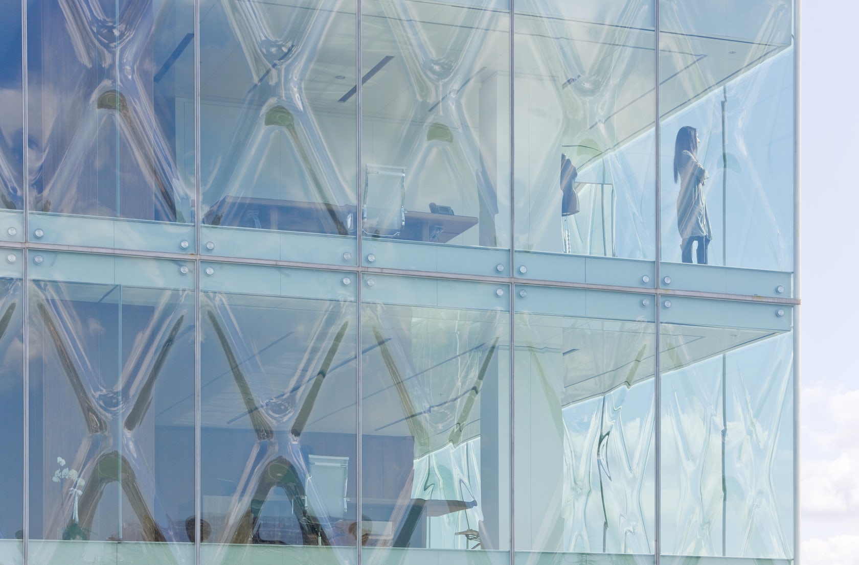 За да постигнат максимален ефект от новата фасада, REX използват извито прозрачно стъкло. Архитектите обясняват: „като се вкара извивка във формата на „Х“ във всеки стъклен панел, здравината му се увеличава, необходимостта от допълнителни рамки се премахва и дебелината му се намалява „.