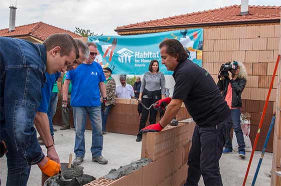 Инициативата по случай Международния ден на Хабитат събра над 30 международни и местни доброволци, които извършиха строителни дейности в подкрепа на борбата срещу жилищната бедност. На строителната площадка в град Костинброд – рамо до рамо работиха известни личности като Тончо Токмакчиев, Дани Милев и Томас Лафчис, представители на медиите, група от 14 американски доброволци, корпоративни партньори, както и четирите семействата – бенефициенти на Хабитат България. Всички участници се превъплътиха в общи работници за един ден и дейно зидаха част от стените на един бъдещ дом за семейство с жилищна нужда.