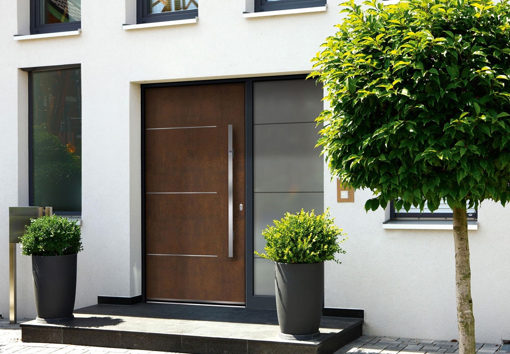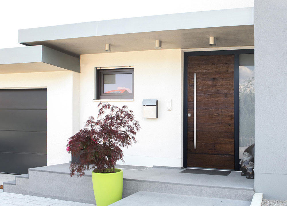 Новата серия от входни врати NaturArt на немската компания Gugelfuss съчетава автентични стари дървени или керамични повърхности с модерни алуминиеви профили.