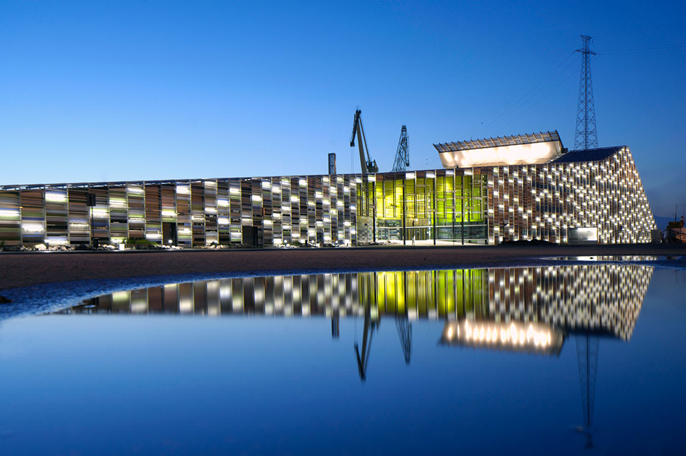 Сградата е абстрактният образ на голяма вълна. Извивката, която доминира в екстериора, и фасадата, специално проектирана да улови блясъка на водата, са предназначени да пресъздадат физическото присъствие на морето. Покривът на морския център представлява площадка, където се случват различни събития. Пешеходна пътека, която леко се издига от центъра на града и се разширява, докато стигне до върха на сградата, води до към площадката.