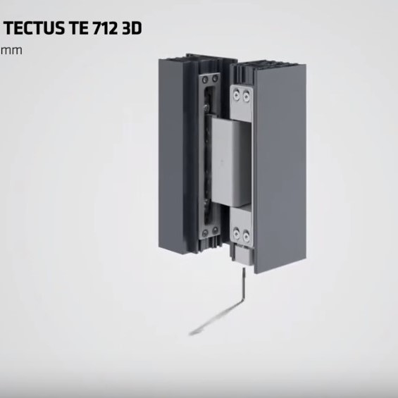 Демонстрация на монтаж на панти за алуминиеви врати Tectus – TE 712 3D на Simonswerk GmbH, предназначени за отваряне навътре и с възможност за триизмерен реглаж.