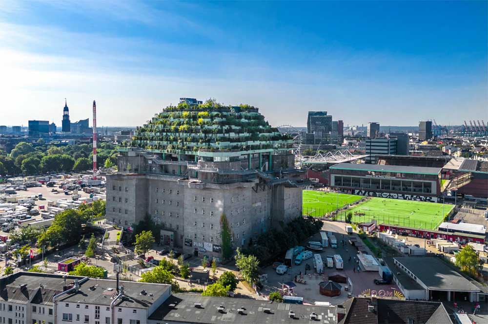 Бункерът „Санкт Паули“, който е паметник на културата, е определяща черта на градския пейзаж на Хамбург от десетилетия. Сега структурата, построена през 1942/43 г., е превърната в нова забележителност. Върху масивната конструкция е построена пететажна терасовидна пристройка с обществено достъпна „планинска пътека“. На височина от почти 60 метра, зелен покрив кани посетителите да се отпуснат. Бившето бомбоубежище сега служи като многофункционално място за събития. В допълнение към изложбените и мемориалните пространства, то помещава първия в Германия хотел Hard Rock със 136 стаи, ресторанти, търговски обекти и акустично изолирана многофункционална зала. Трансформацията на бетонния колос е извършена по планове на Inter+-Pol Studios, Buero 51 Architekten и Phase10 Architekten.