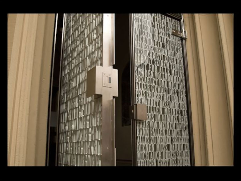 Новият портал включва метални текстови пасажи от две фундаментални изповедания на лютерано-реформираната традиция, които са вградени в пространството между стъклата на вратата.