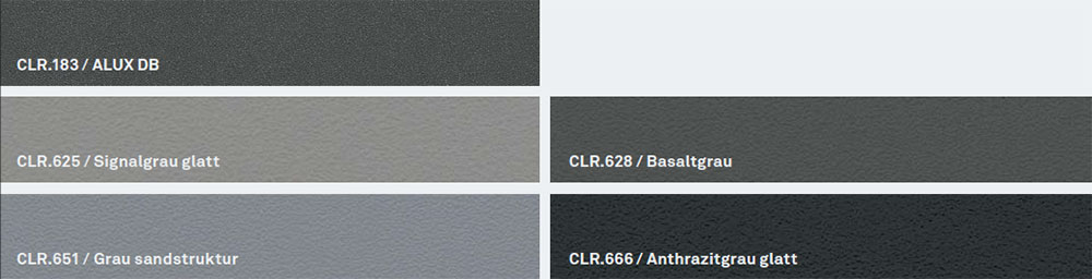 Друго предимство е фактът, че системата HS 476 може да бъде поръчана във всички 40 цвята на Декьонинк , за да може да задоволите различните предпочитания на вашите клиенти. При нас може да намерите над 10 различни нюанса на сивото, включително и такива сиви фолиа, които имитират алуминие вид на конструкцията.