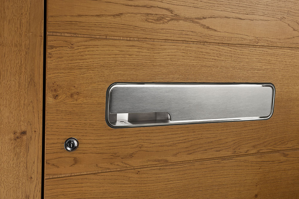 Иновативният и признат дизайн на входните врати Pirnar привлича вниманието както на собствениците, така и на посетителите на дома. С елегантно скрити дръжки, скрит четец за пръстови отпечатъци, вълшебно нощно осветление и красиви ръчно изработени гладки повърхности, всяка врата е шедьовър сама по себе си.