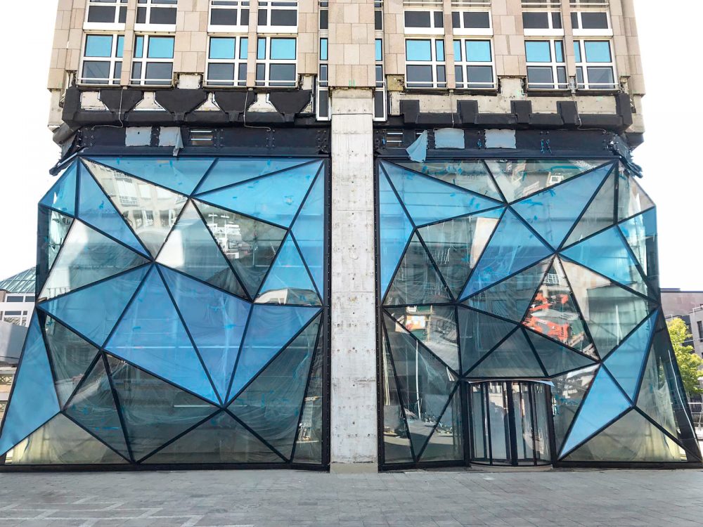 Над 150 триъгълни изолационни стъклени елемента гарантират безупречния вид на шлифован скъпоценен камък. Те са интегрирани под различни ъгли в заварена носеща конструкция от 12 стоманени носача.