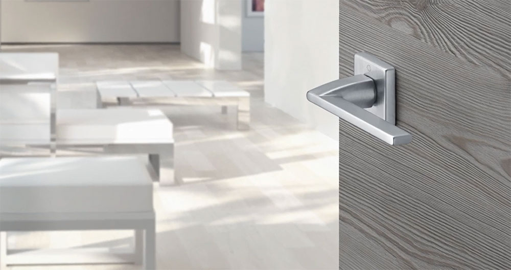 Новата серия дръжки за врати от месинг Bergamo на Hoppe се характеризира с изчистена и елегантна линия – квадратна основна форма, плоска дръжка, тесен ръб.