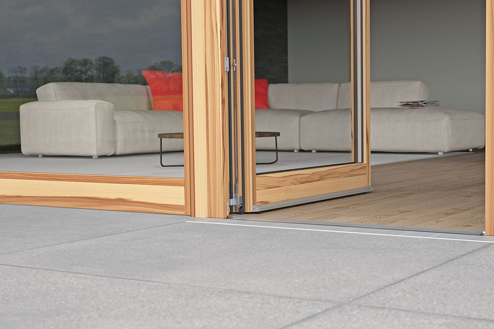 Основна предпоставка за изпълнение на изискванията за строителство без бариери е достъп до сградата без прагове на едно ниво. Именно тук влиза в действие системата с нулев праг Combi Plan на Grundmeier.
