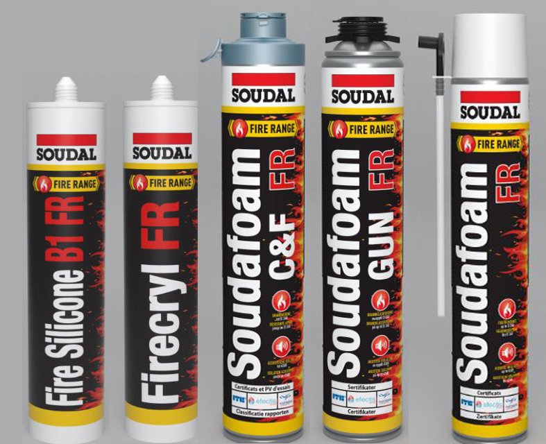 Soudafoam FR: Огнеустойчива PU пяна в аерозолна флакон, бързо втвърдяваща се , подходяща за запълване на по-големи фуги. Разширява се във фугата до около два пъти от първоначалния си обем. Отлично залепване към широка гама строителни материали, изключителни изолационни и звукоизолационни характеристики. Подходящ за вътрешни и външни приложения. Пожароустойчивост до 220 минути. Предлага се в ръчна и пистолет версия.