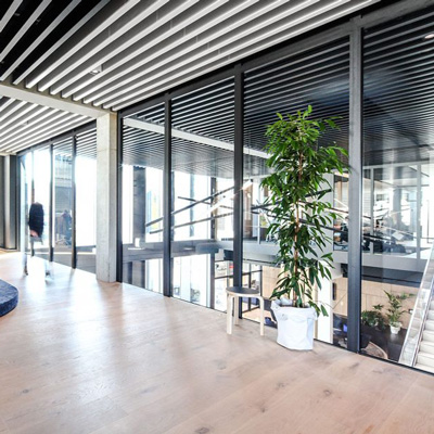 При проектирането на офисите, MAS разчита изцяло на най-новите открития в трудовите проучвания, според които бързо променящите се задачи изискват гъвкави екипи, които комуникират спонтанно и бързо. Потенциално всеки трябва да е в контакт със всички и за това е необходимо да има отлична видимост между служителите. Поради тези причини е решено стъклените стени да бъдат основният елемент на интериорния дизайн. Важно е, от една страна, пространствата да бъдат разделени гъвкаво, от друга страна са необходими възможности за концентрирана работа в екип. За удовлетворяване на тези изисквания са използвани плъзгащи се стъклени елементи в съчетание с отлична шумоизолация.