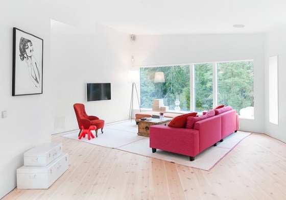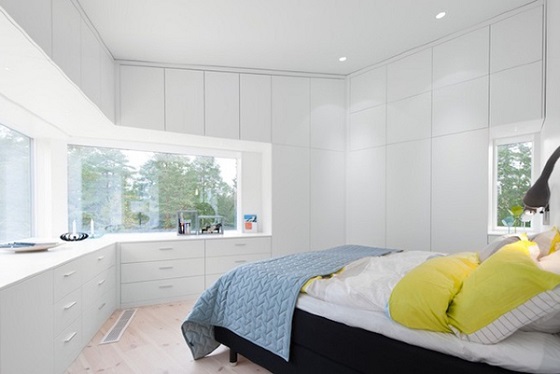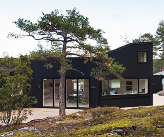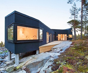 Гарваново-черният екстериор на тази вила контрастира силно със снежнобелите й вътрешни пространства, пълни с естествена светлина. Всички стаи са на едно ниво, а гардероби, осветление и контакти са скрити вътре в стените и таваните за постиганена още по-изчистен вид. Родителската спалня на тази енергийно ефективна къща има най-прекрасната гледка, така че обитателите й могат да се насладят на горите от първия до последния миг на деня.